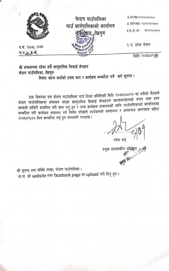 सहज कर्ताको तलव माग र कार्यक्रम सम्झौता बारे।