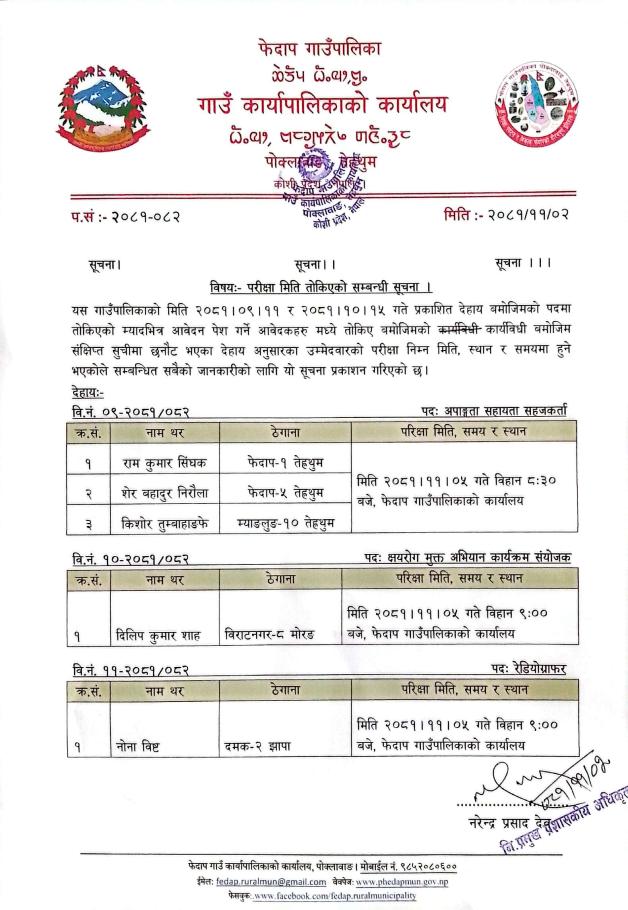 फेदाप गाउँपालिकाबाट जारी गरिएको अत्यन्तै जरुरी सुनचा ।